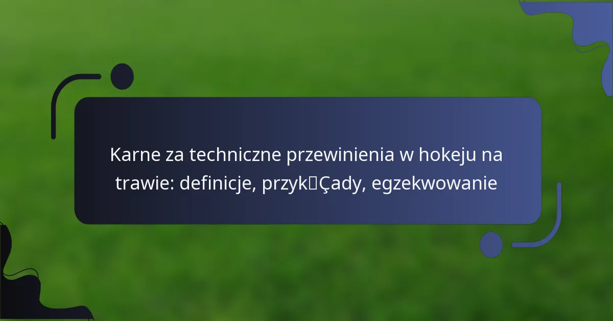 W hokeju trawiastym faul techniczny definiowany jest jako naruszenie zasad, które nie wiąże się z kontaktem fizycznym ani nieodpowiednim zachowaniem, często dotyczące naruszeń proceduralnych. Takie faule mogą zakłócać przebieg gry i zazwyczaj skutkują rzutem wolnym dla drużyny przeciwnej. Egzekwowanie tych fauli odbywa się zgodnie z ustalonym procesem mającym na celu utrzymanie ducha gry, jednocześnie zajmując się naruszeniami, które mogą podważać uczciwą grę.
